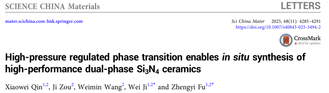 Xiaowei Qin, Ji Zou, Weimin Wang, Wei Ji, Zhengyi Fu. High-pressure regulated phase transition enables in situ synthesis of high-performance dual-phase Si3N4 ceramics. Sci. China Mater. (2026).